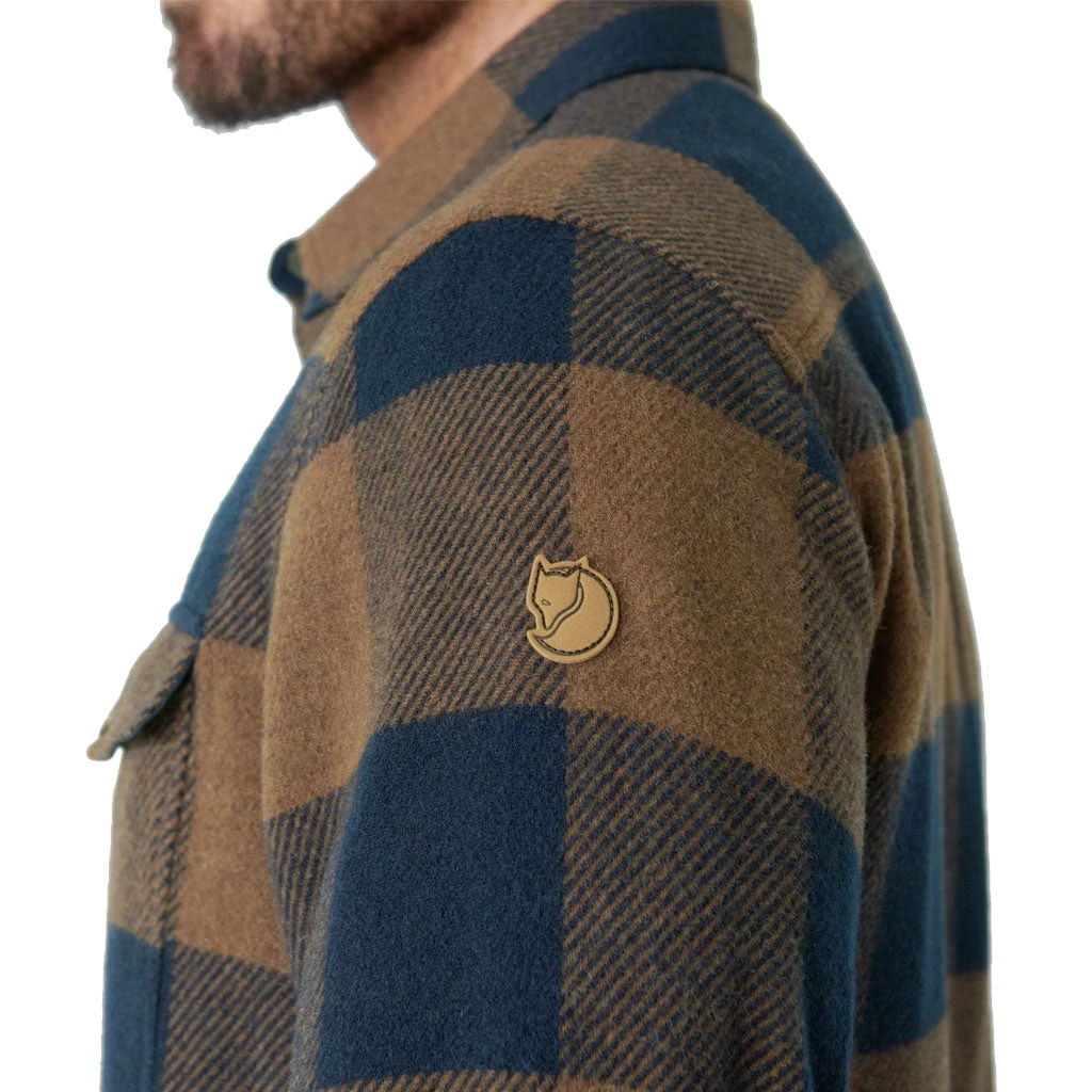 EGENSKAPER Type: Flanellskjorte (herre) Består av: Flanellskjorte i resirkulert ull, akryl og polyester, trykknapper Bruk: Vinterhalvåret Spesielle egenskaper: Ull er naturlig temperaturregulerende, fukttransporterende og luktresistent. Krever sjelden vask. Merknader: MATERIALER Materiale: 45% Akryl / 25% Polyamid / 25% Ull Materiale detalj: Logo på venstre arm i skinn MÅL OG VEKT Passform: Normal, men romslig. Kan også brukes som overskjorte. Mål (Diameter, Høyde): Se størrelsesguide! Vekt: 600 g (M) STØRRELSESGUIDE