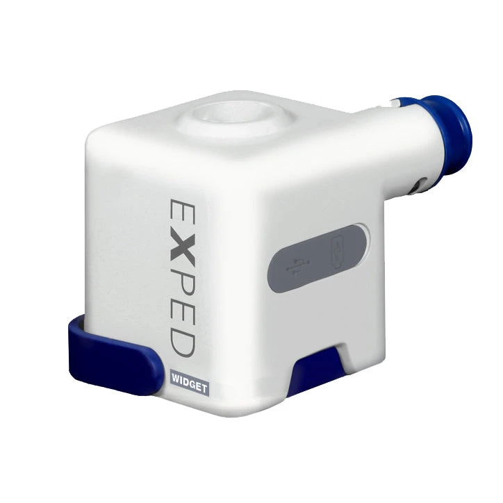 Widget can inflate EXPED’s giant MegaMat Duo LW in 4 minutes and do so up to 4 times. A fully charged Widget will easily inflate a pair of EXPED’s backpacking mats for over a week of adventuring in the wilds. In lamp mode, a fully charged Widget will illuminate camp for up to 72 hours at the low power setting. The 3600 mAh powerbank, when fully charged, provides at least one phone charge. (Note: like all battery-powered devices, cold temperatures will reduce operating performance).