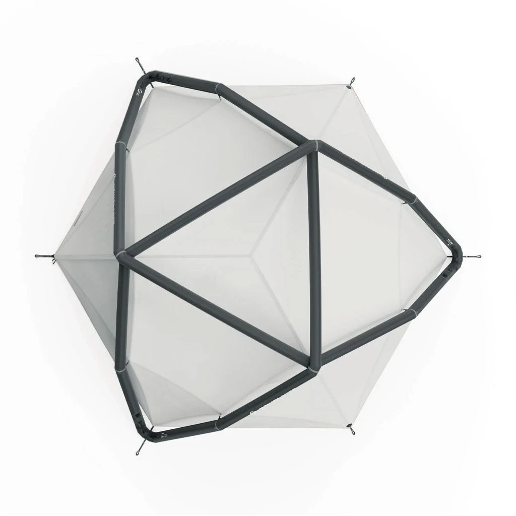 Dette er et oppblåsbart 3-sesongs telt for 2 personer i en geodetisk kurvet konstruksjon, med god plass på innsiden og et spesielt værmotstandig ytre!