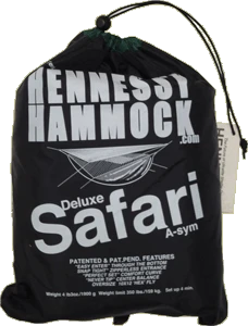 Hennessy Hammock Safari Deluxe Classic er en av de største, bredeste og dermed den mest komfortable hengekøye. I denne er det plass til 2 personer så lenge ikke totalvekten overskrides. Hennessy Hammock Safari Deluxe Unik hengekøye med assymetrisk form og inngang bak.