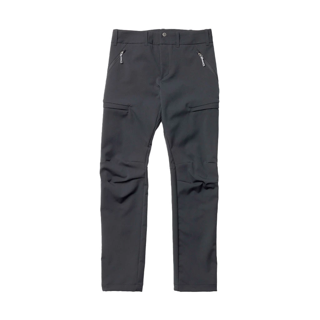 Materialet er laget i Motion Comfortshell™ som består av et lag med soft shell og toveis stretch. Linningen føles behagelig og myk, mens yttermaterialet er smidig men likevel laget for å tåle årevis med hard bruk. Ytterstoffet er behandlet med fluorkarbonfri DWR-impregnering som er vann- og vindavvisende samtidig som at det virker pustende. Det finnes glidelåslommer til hendene på begge sider, to romslige benlommer over lårene og glidelåslomme med to knapper i front. Det er i tillegg belteløkker langs midjen og snørestramming i begge benåpningene når du trenger ekstra isolasjon.