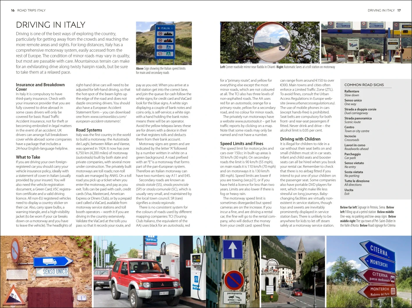 – Alle italienske kjøreregler, postnumre for bruk med satellittnavigasjon og detaljerte veibeskrivelser for enkel navigering, informasjon om veiforhold og parkeringstips