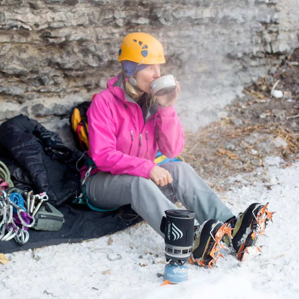 Løsningen består av en gassbrenner med et FluxRing design som virker vindavvisende og sørger for maksimal utnyttelse av flammen. Kjelen på 0,8 liter er integrert med brenneren og gjør at det kun tar 2:30 minutter å koke opp kjelen full av vann. Utsiden av kjelen er trukket med et mykt stoff med et håndtak, og kan fint brukes til å spise ut av for å spare enda mer plass i tursekken. Lokket som følger med har en helletut og en liten sil. Støtteben til gassboks følger med, slik at gass og lighter/fyrstikker er det eneste du behøver utenom. Dekselet til brenneren kan også brukes som en skål til turmat eller drikke slik at du sparer tursekken for enda et tilbehør.
