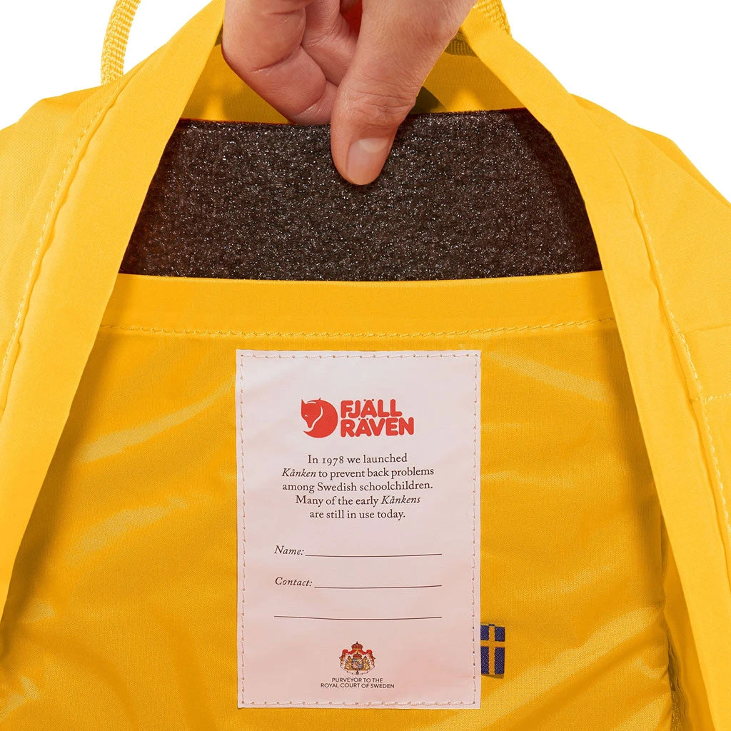 EGENSKAPER Varenavn: Fjellreven Kånken Mini Type: Ryggsekk Aktivitet: By, hverdag, skole, jobb Spesielle egenskaper: En original kult-klassiker! Merknader: Inkluderer sitteunderlag MATERIALER Materiale hovedstoff: 100% Vinylon (100% polyester) Passform: Normal MÅL OG VEKT Kapasitet: 7 liter Mål (HxBxD): 29 cm x 20 cm x 13 cm Vekt: 220 g -