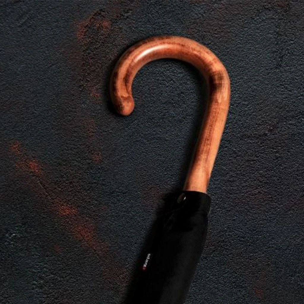 Dette er en paraply med et oldschool utseende, men med super ytelse of holdbarhet. I det klassiske treskaftet ligger knappen som automatisk åpner og lukker duken helt. Denne er også ekstra holdbar, med 10 stenger i konstruksjonen som bidrar til ekstra vindstyrke. Dette er den største og lengste, med henholdsvis 113 cm diameter og 92 cm lengde når den er lukket.