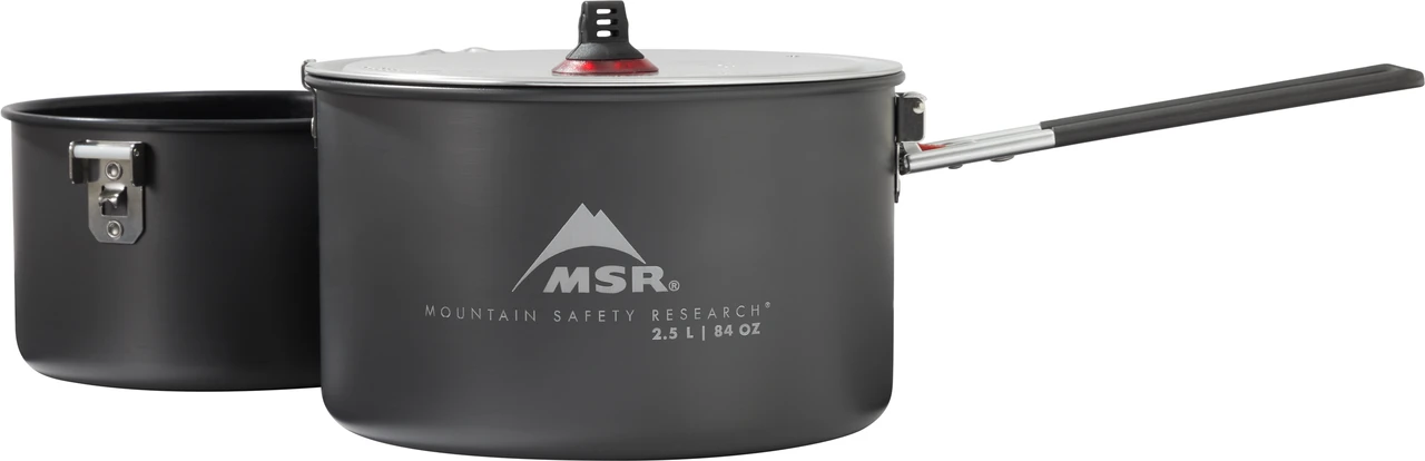 Dette kjeramisk aluminium kjelesett gjør det enklere enn noen gang å lage mat som du gjør hjemme mens du er i villmarken, takket være den superbe keramiske non-stick overflaten. Sammen håndterer pottene på 2,5 liter og 1,5 liter en rekke villmarksmåltider, og tilbyr praktisk, problemfri opprydding. Dette pakkevennlige settet er tøft og lett, og har plass til å krus og tallerkener, og sparer dyrebar plass i sekken din.