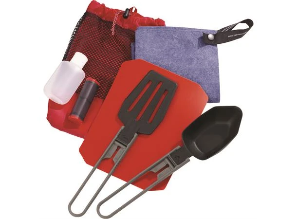 Lettvekts kjøkkensett med de mest nødvendige kjøkkenredskapene i lett pakke.