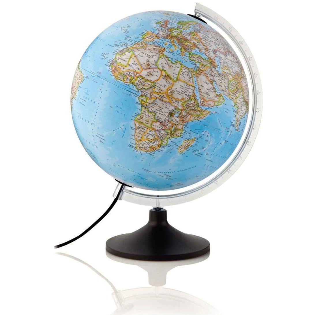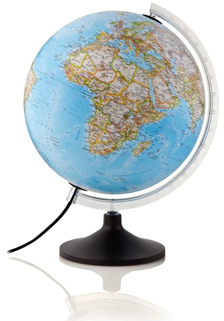 Lysende skrivebords-globus fra National Geographic med kart som viser politiske grenser og fysiske beskrivelser. Laget i høy kvalitets plast.