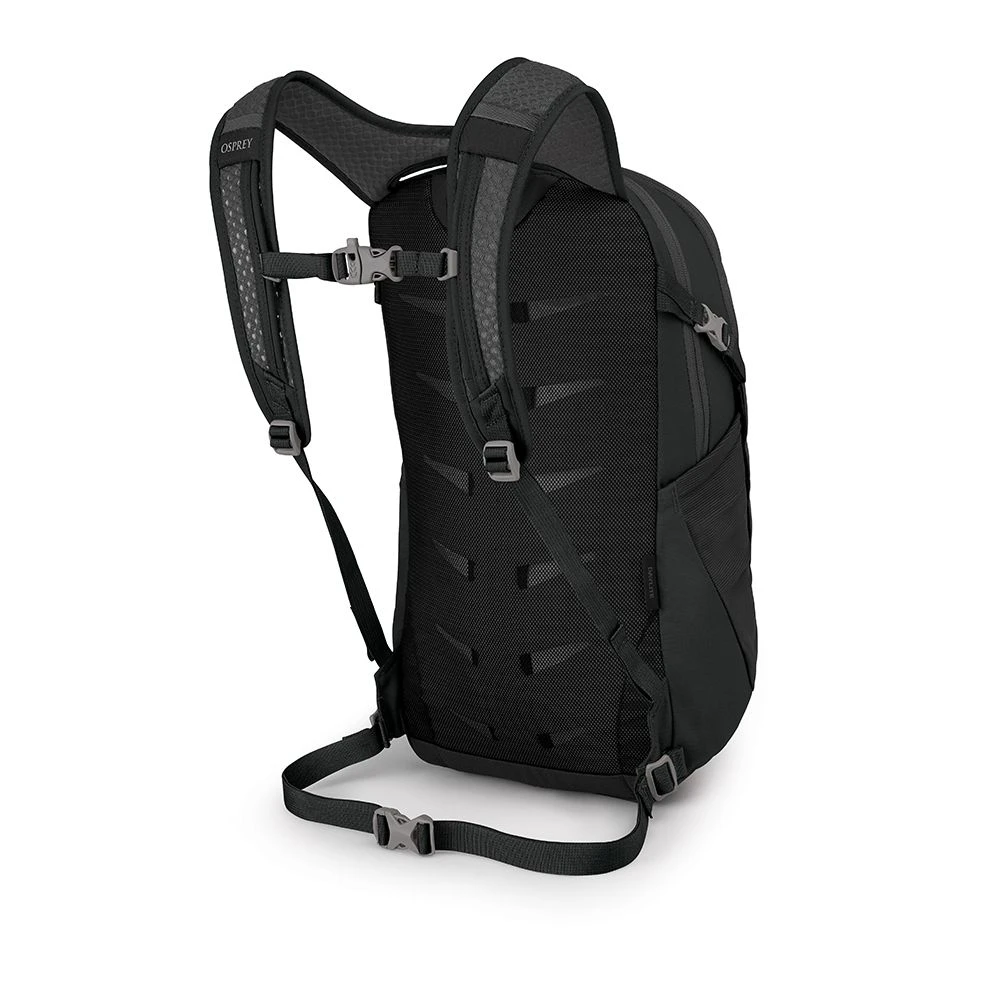 Daylite er konstruert med et svært pustende AirScape™ bæresystem, med komfortabel netting i hele ryggen, justerbare skulderreimer i holdbart men luftig stoff med brystreim, og et enkelt hoftebelte nederst. Hovedrommet åpnes via en dobbel glidelås og skjuler en åpen lomme for drikkeblære, spesielt tilpasset Osprey’s Hydraulics™ i alle størrelser. En litt mindre ytre glidelåslomme har to åpne innerlommer med nøkkelklips, perfekt til oppbevaring av verdisaker, elektronikk eller andre småting. Det finnes to elastiske nettinglommer på utsiden tilpasset drikkeflasker eller termos, med egne kompressjonsstropper som gjør at man kan frakte selv de største og lengste flaskene med på tur uten problemer. Hovedstoffet er laget i et slitesterkt 300 denier materiale laget av resirkulert PET-polyester, og laget for å tåle hard bruk i årevis.