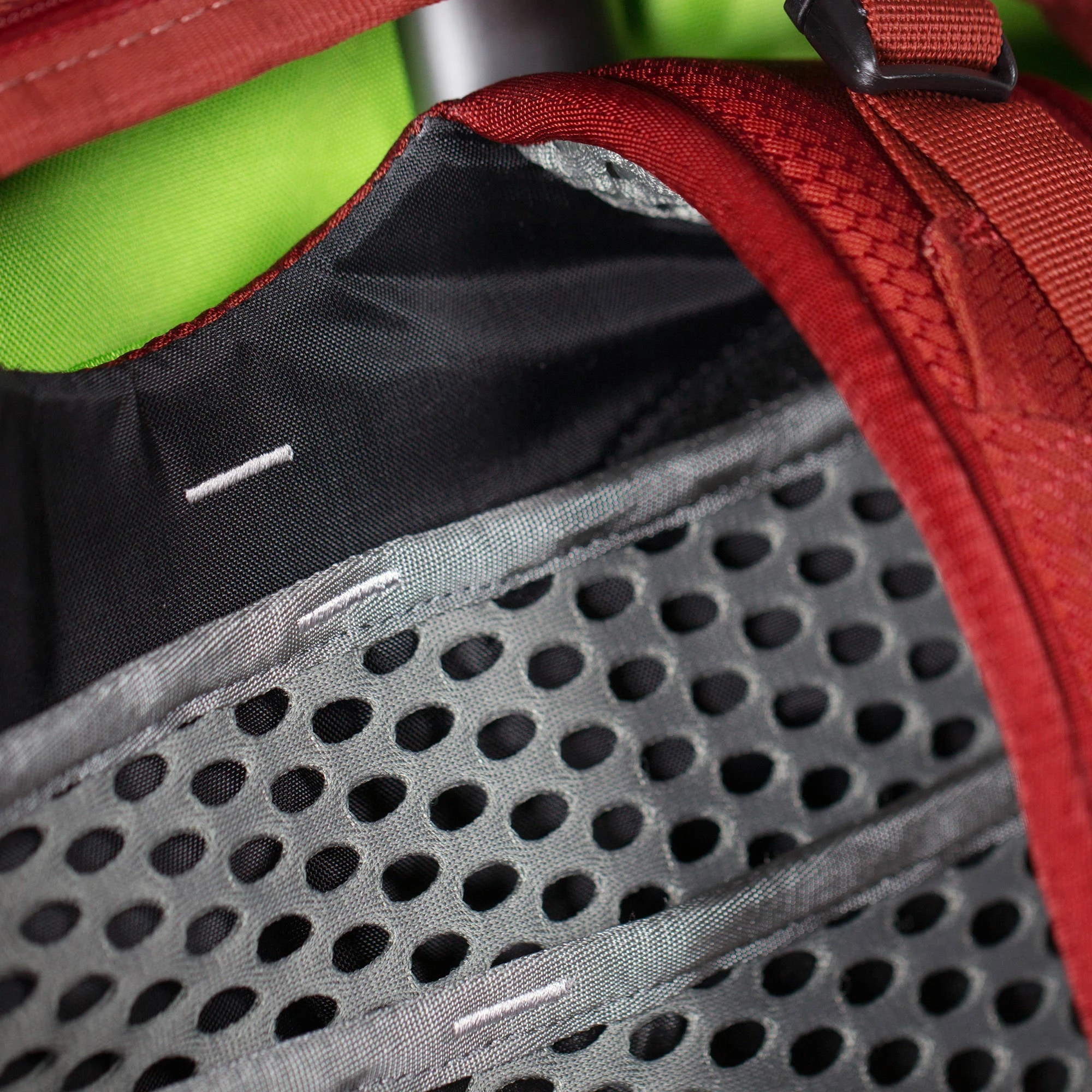 AG AntiGravity™ trampolinesuspendert netting-ryggsystem gir maksimal komfort og ventilasjon selv med bæring av tung last, sammen med en overkroppssele og hoftebelte med glidelåslommer for rask tilgang på nødvendige småsaker. Hovedrommet er forsterket med StraightJacket ™-skumvinger for stabilitet og beskyttelse av innhold, og på innsiden finnes det flere smarte organiseringsmuligheter, som en egen tilbehørslomme tilpasset Osprey sine toalettmapper, adskilte nettinglommer for skotøy og klær, samt polstret lomme for laptop eller nettbrett. Kompressjonsstroppene på innsiden bidrar samtidig til å sikre lasten slik at innholdet holdes trygt på plass til enhver tid.