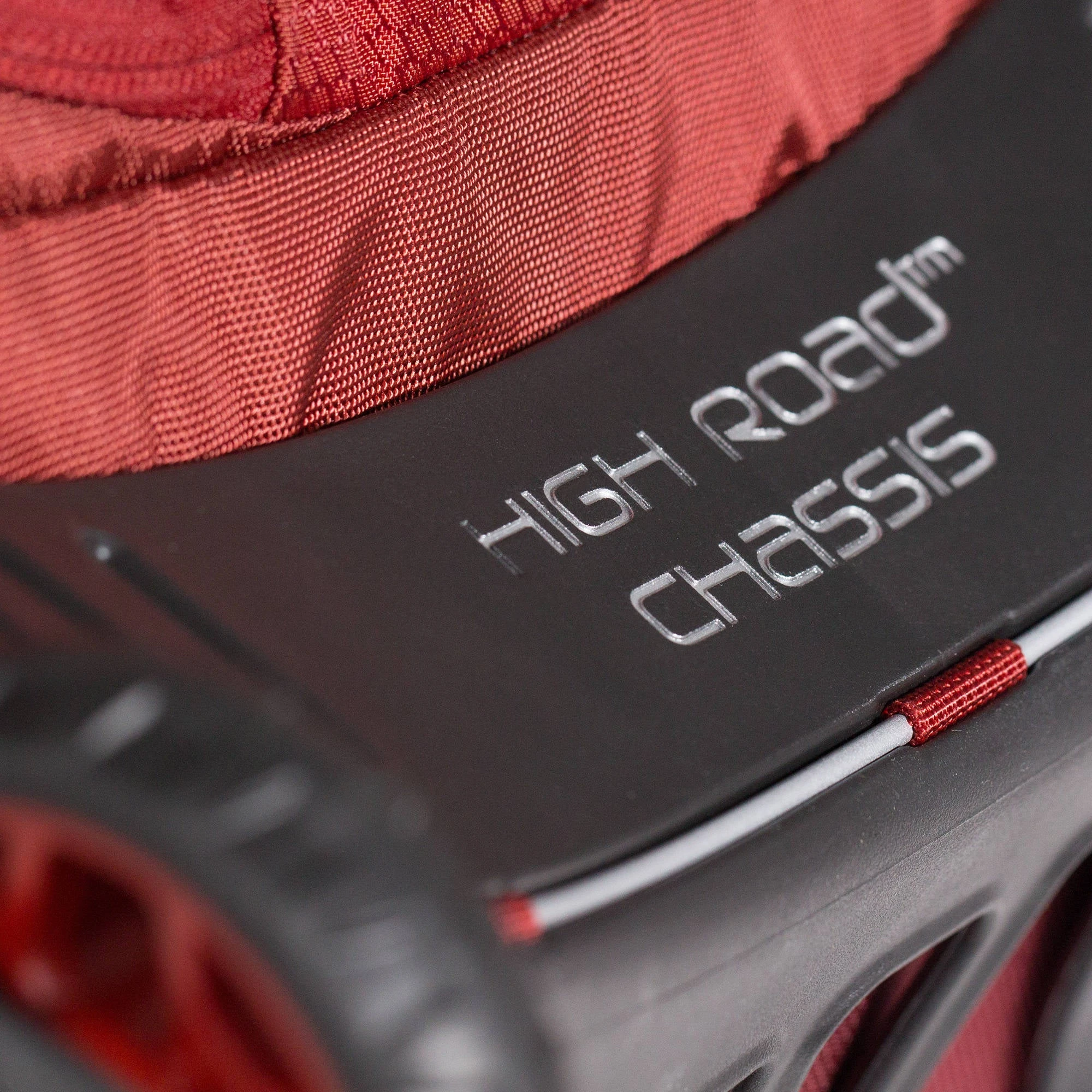 Kontusjonen består av et HighRoad™-chassis i ABS polymer-plastikk og polyuretan-hjul som gir maksimal styrke og holdbarhet. Det uttrkkbare ErgoGrip™-håndtaket lar deg dra baggen med et fast og komfortabelt grep. Utisden har kompressjonsstopper og festemuligheter for Osprey Daylite/Daylite Plus-sekken (selges separat), og hjelper med å lukke sidevingene inn dersom du skal reise lett.