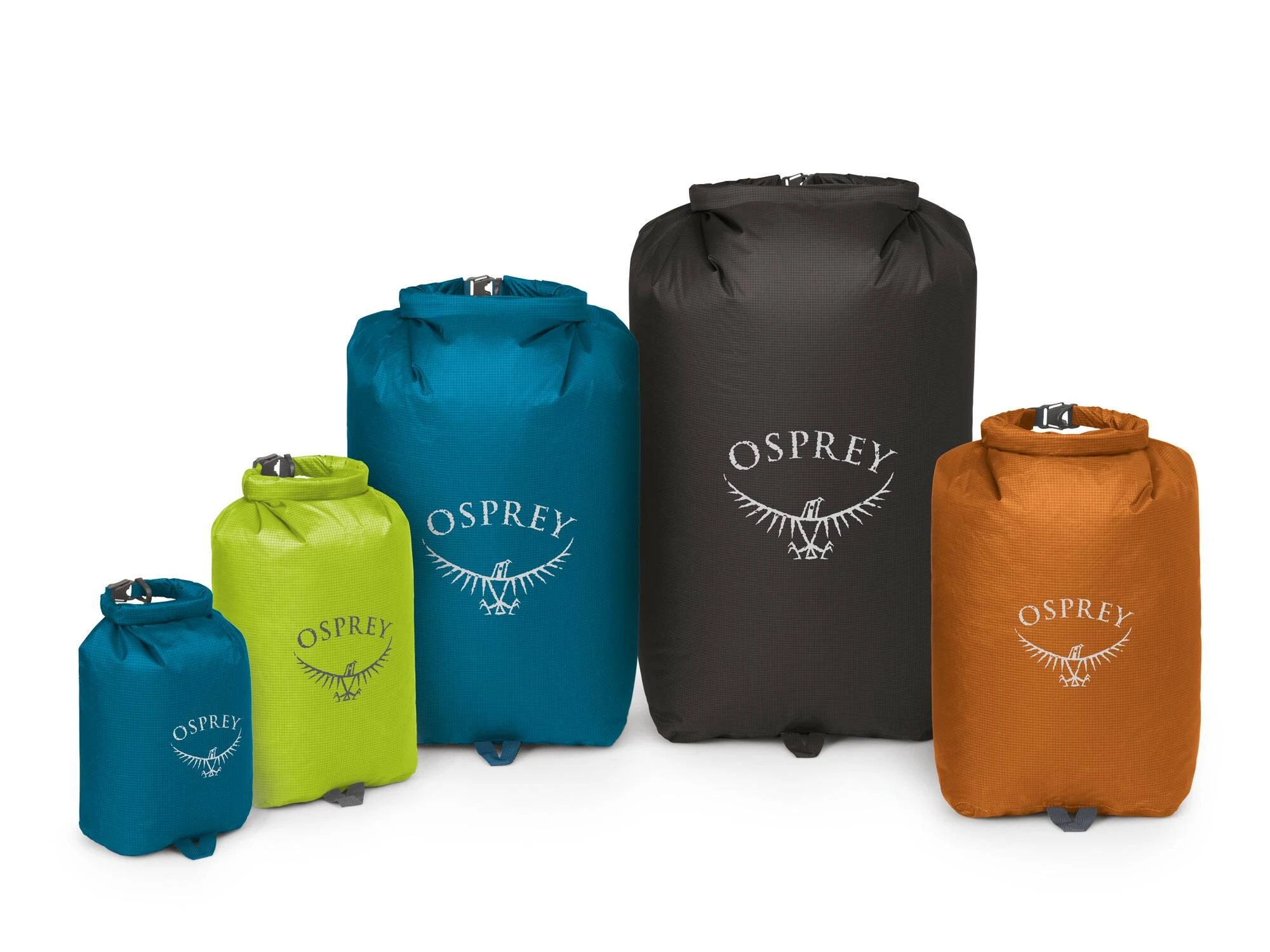 Osprey sine drysacks er laget av silikonisert ripstop-nylon og dermed designet for å holde utstyret beskyttet, uansett hvor vått det blir.