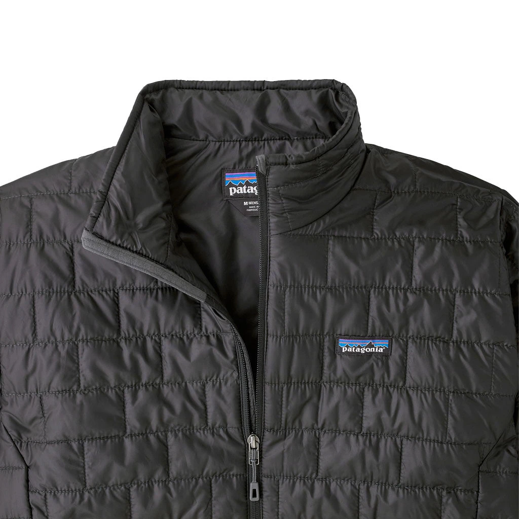 Nano Puff Jakke har en varm krage med en YKK-glidelås som går langs hele midten. Det finnes håndlommer med glidelås på begge sidene, snørestrammere i nedekanten, og en Patagonia tekstilflik-logo over venstre bryst. Ellers er dette en forholdsmessig minimalistisk utstyrt jakke. Stoffet på utsiden er laget smidig ripstio nylon med en DWR-finish som virker vind- og vannavvisende. Linningen på innsiden er laget i smidig polyester som føles komfortabel mot en genser eller hettegenser under. Hele jakken er såpass lett og at den kan komprimmeres og pakkes helt inn i en av innerlommene når den ikke er i bruk!