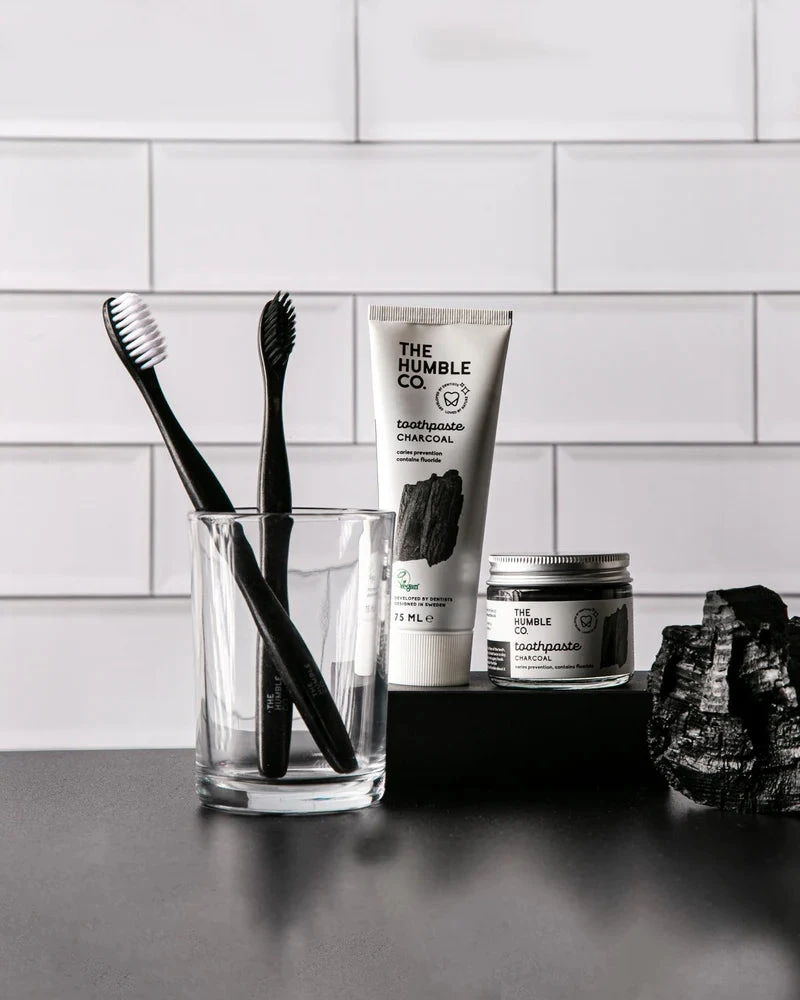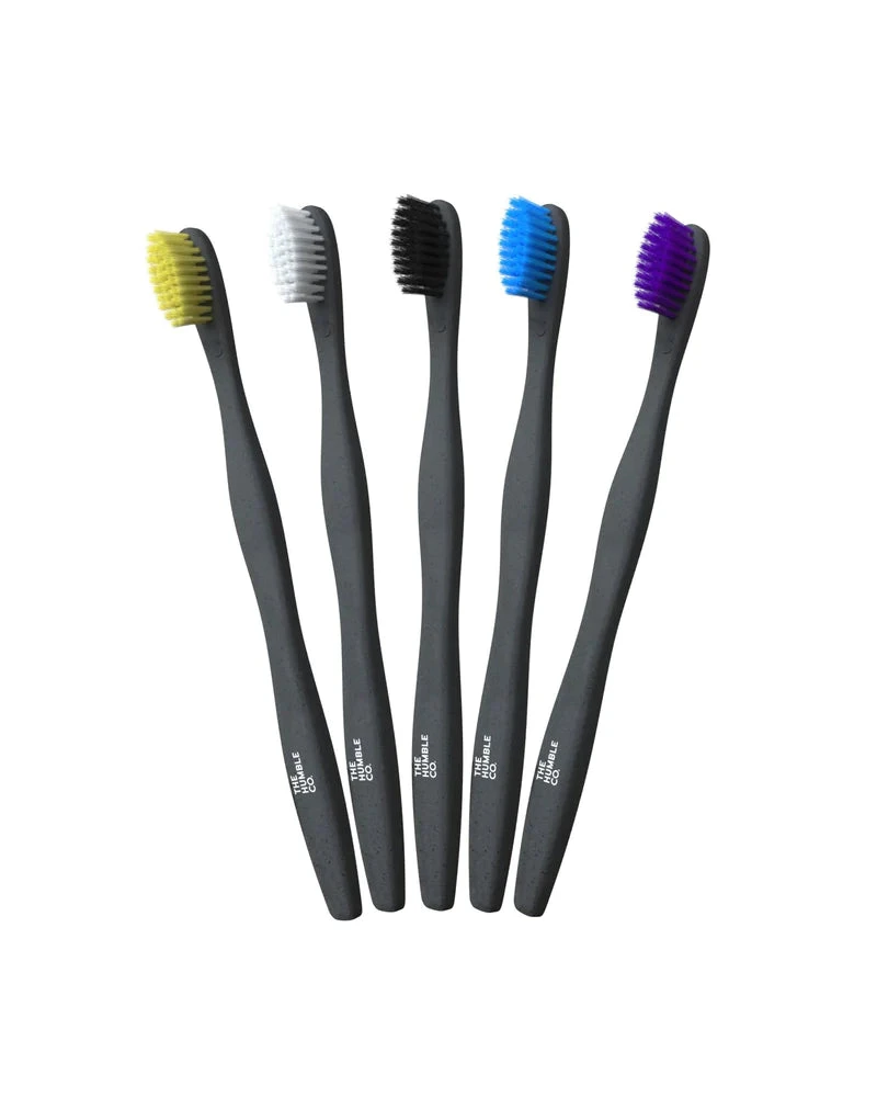 The Humble Co. har laget en plantebasert tannbørste. Familievennlig 5-pakning med økovennlig resirkulert emballasje som kan kastes i organisk avfall.