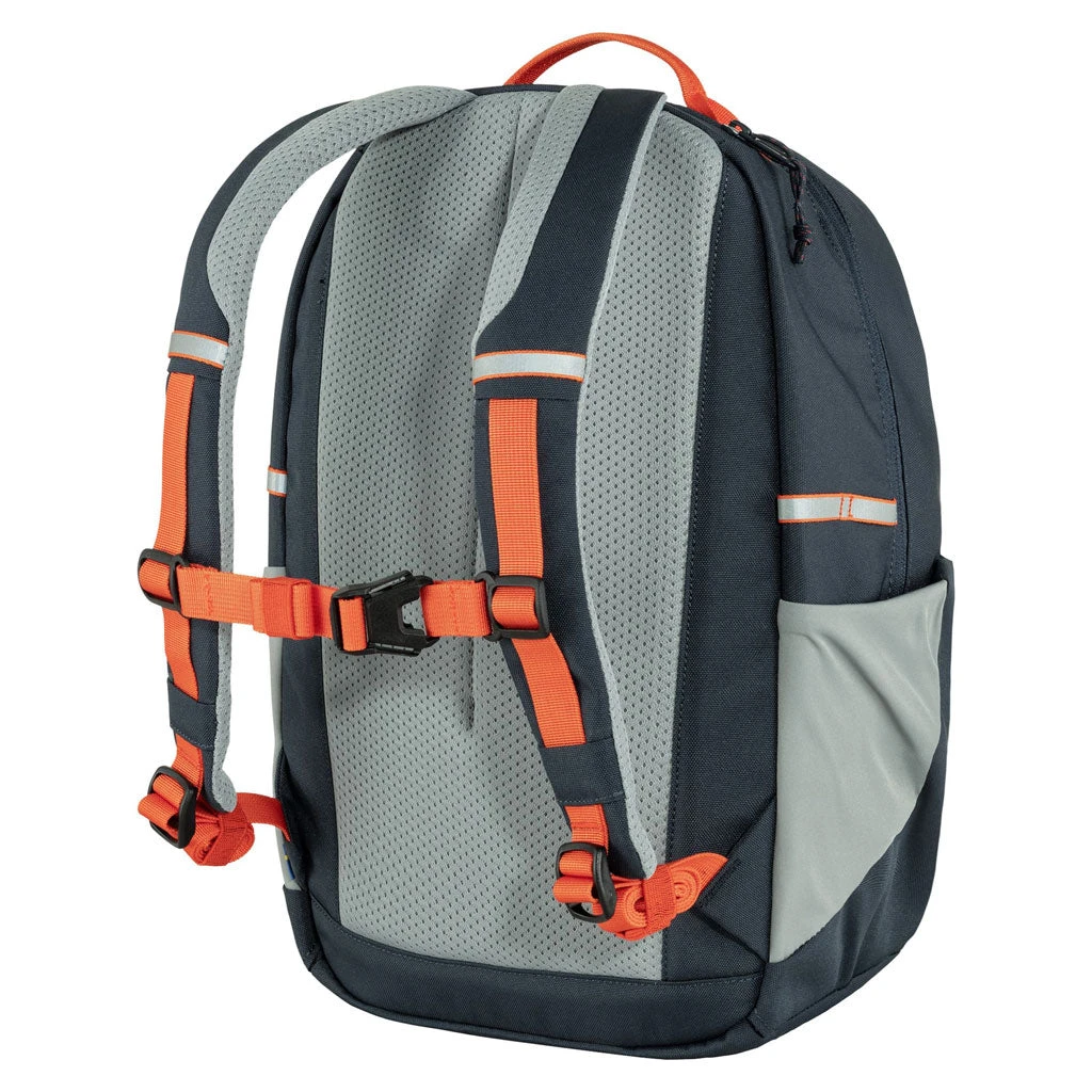 Hovedrommet på 15 liter har organiseringsløsninger som er spesielt tilpasset A4-format og skrivessaker. På innsiden finner man også den klassiske navnelappen. Ryggsekken er laget i Fjellrevens resirkulerte Oxford-stoff som både virker slitesterkt og vannavvisende. Bæresystemet består av polstrede skulderstroper med brystreim som man kan ta av og på, og det er i tillegg sydd inn refleks over hele frontpanelet, for synlighet i traffikken på den mørke tiden av året.