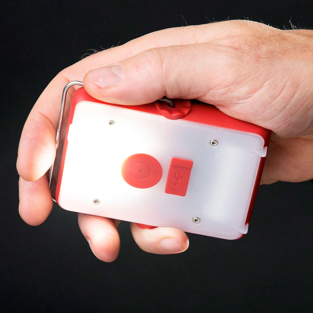 Den kompakte størrelsen på bare 10 x 7cm og 110 gram og 3 ulike styrkeinnstillinger gjør den til et enkelt valg av leselys på telttur, eller som et ekstra nødlys i tursekken. Den er utstyrt med en praktisk liten bøyle som enkelt lar deg hekte den til tursekken når du lader, i taket på teltet i mørket eller som støtteben på rette overflater.