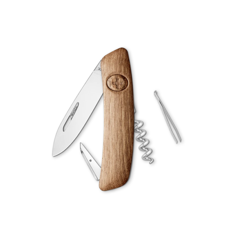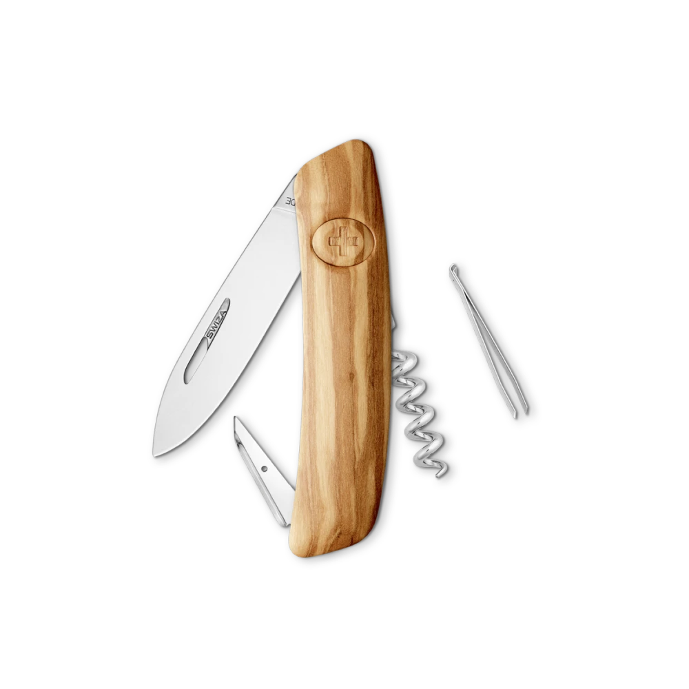 Safety: Blade with safety lock to prevent from closing when working. The blade can be unlocked by pressing the SWIZA cross.