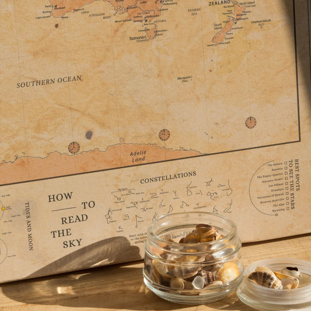 Dette dekorative lerretkartet er laget for å bevare gode minner og inspirere til reiselyst på veggen i gangen, i stua, på soverommet eller på kjøkkenet.
